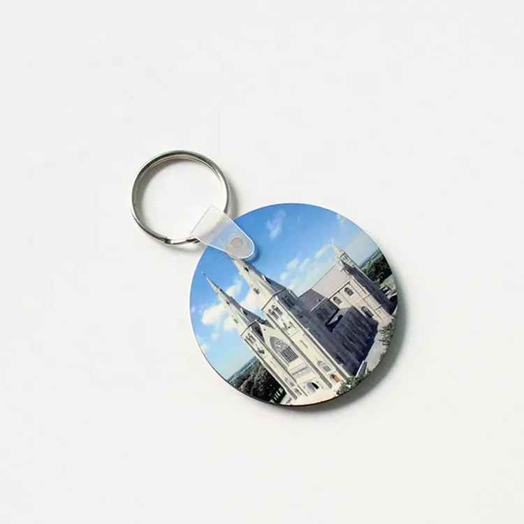 Gracias a su doble faz sublimable, permite estampar fotografias, logotipos o mensajes en ambos lados, creando piezas atractivas para souvenirs, regalos empresariales, recuerdos de eventos y promociones publicitarias. El diseno incluye un clip plastico transparente y aro metalico que facilitan el armado y aportan un acabado limpio y funcional para el uso diario.