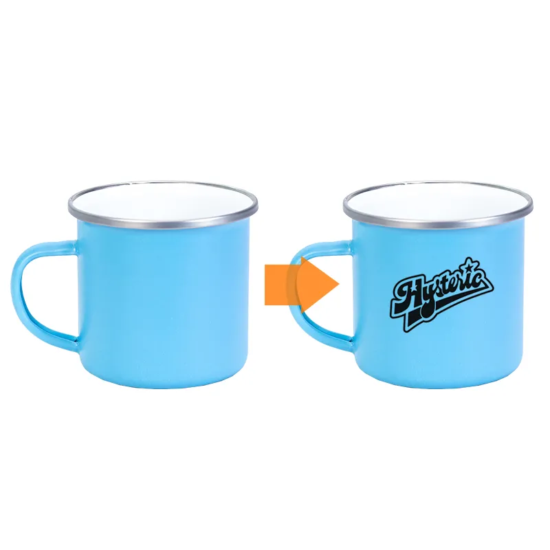 Se entrega en caja individual dentro de paquetes de 48 unidades para facilitar logística y almacenamiento. Una taza enamel atemporal que une estilo retro, durabilidad y un acabado profesional listo para personalizar.