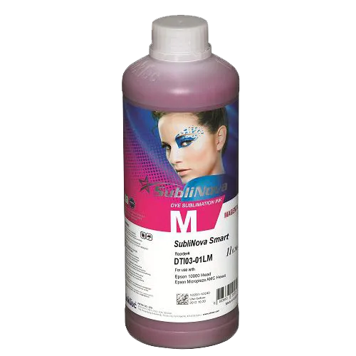 La tinta de sublimación SubliNova Smart de InkTec (Corea del Sur) en color magenta está formulada para ofrecer resultados profesionales en impresión directa o por transferencia térmica. Su alta estabilidad en cabezales y secado rápido se traducen en tonos vibrantes, degradados limpios y consistencia cromática en textiles de poliéster y objetos recubiertos para sublimación.