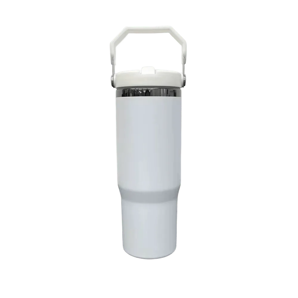 El diseño ergonómico integra una tapa con gran asa para un agarre firme y cómodo, facilitando el transporte diario. Disponible en blanco y rosado, su acabado limpio resalta los gráficos y aporta un look moderno a cada pieza personalizada.